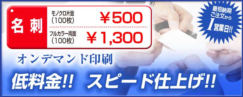 変形名刺 91×55から1辺カットにつき100枚あたり100円追加 |